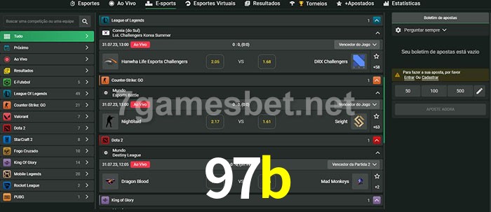 O 97b oferece uma grande seleção de opções de apostas em e-sports com probabilidades competitivas